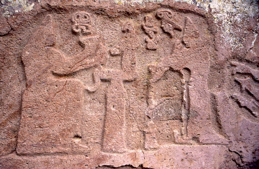 Dağ tanrıları, Hurri-Mitanni kökenli tanrılar olarak Hitit tanrılar ailesine kabul edilmiştir.Yesemek'teki örneklerin Amanos Dağlarını simgelediği düşünülür. |